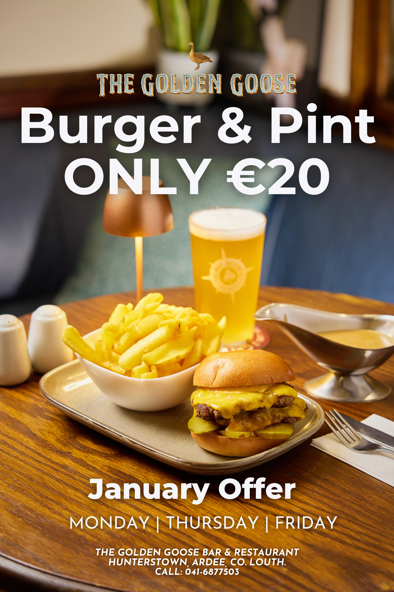 ๐ ๐๐ฎ๐ซ๐ ๐๐ซ & ๐๐ข๐ง๐ญ ๐๐๐๐ €๐๐ enjoy a fresh pint of Galway Hooker with our homemade burger
