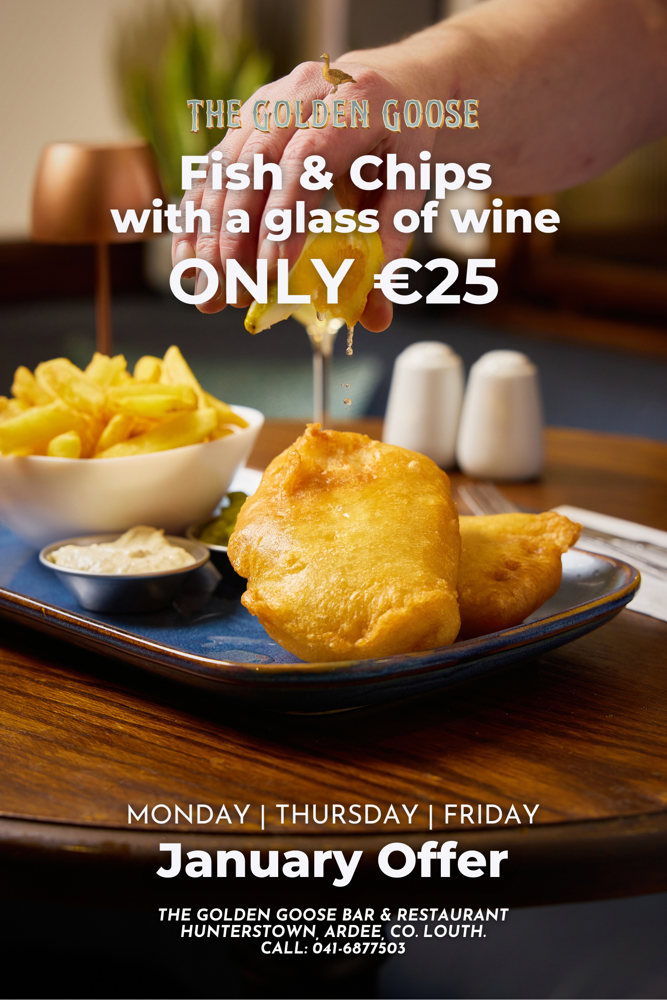 ๐ข๐ฌ๐ก & ๐๐ก๐ข๐ฉ๐ฌ ๐ฐ๐ข๐ญ๐ก ๐ ๐๐ฅ๐๐ฌ๐ฌ ๐จ๐ ๐๐ข๐ง๐ ๐๐๐๐ €๐๐ relax with a glass of house red/white