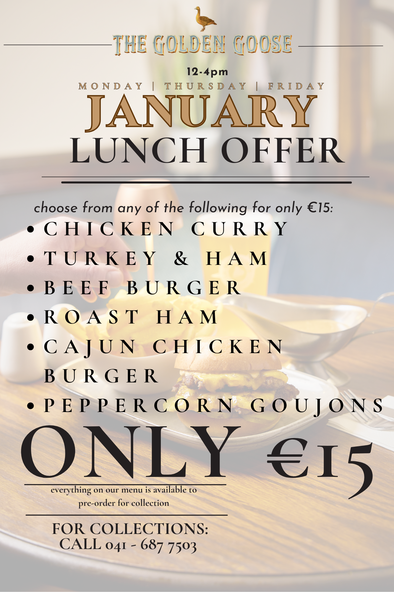 As always, everything on our menu - including these lunch specials - available to order for collection. Call 041-6877503